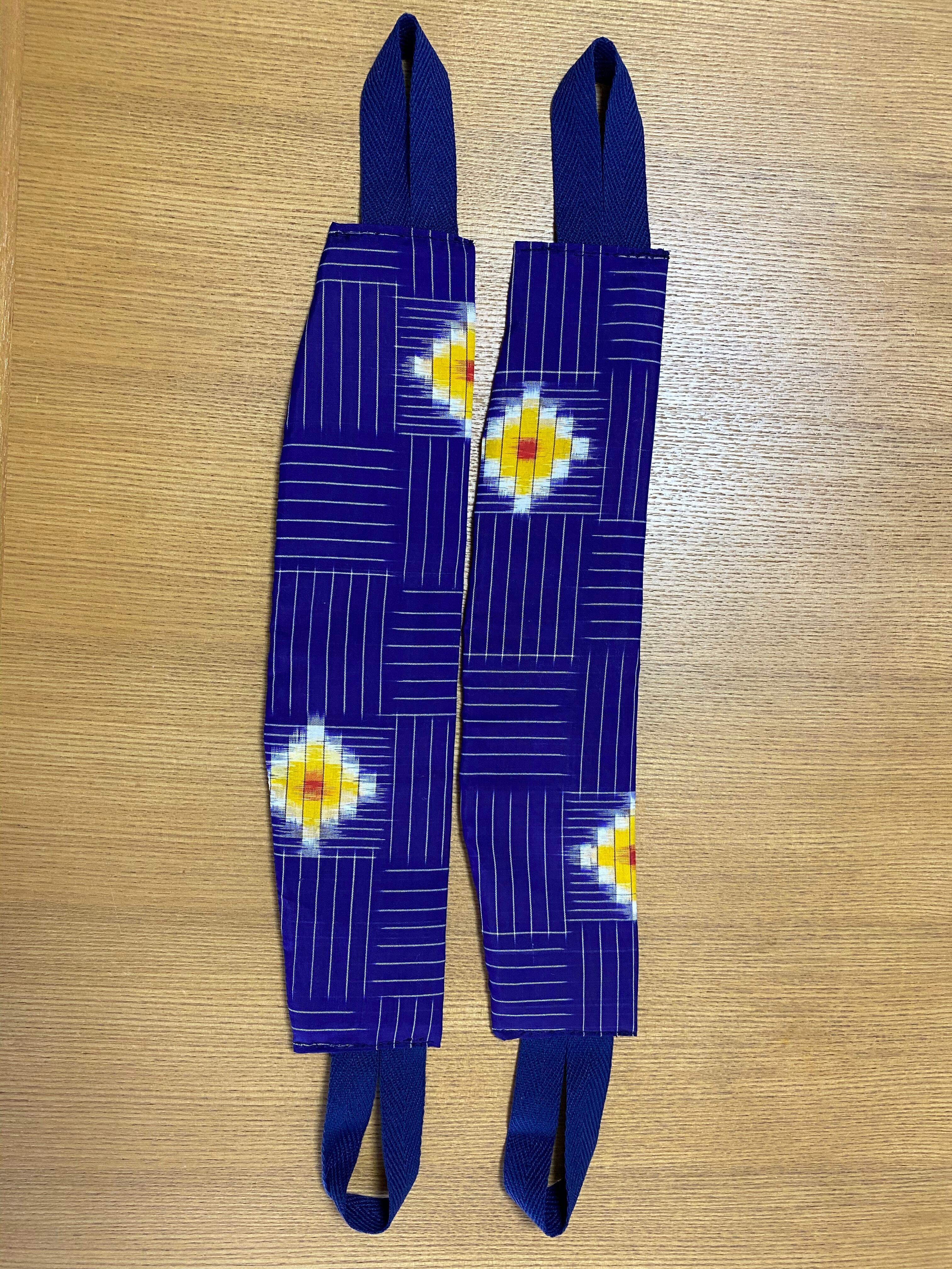 こちらの反物は最後から2枚目の写真ように、表側に黄色い模様が出るようにしております。そうすると一番最後の写真のように裏側に黄色い模様が少ないです。