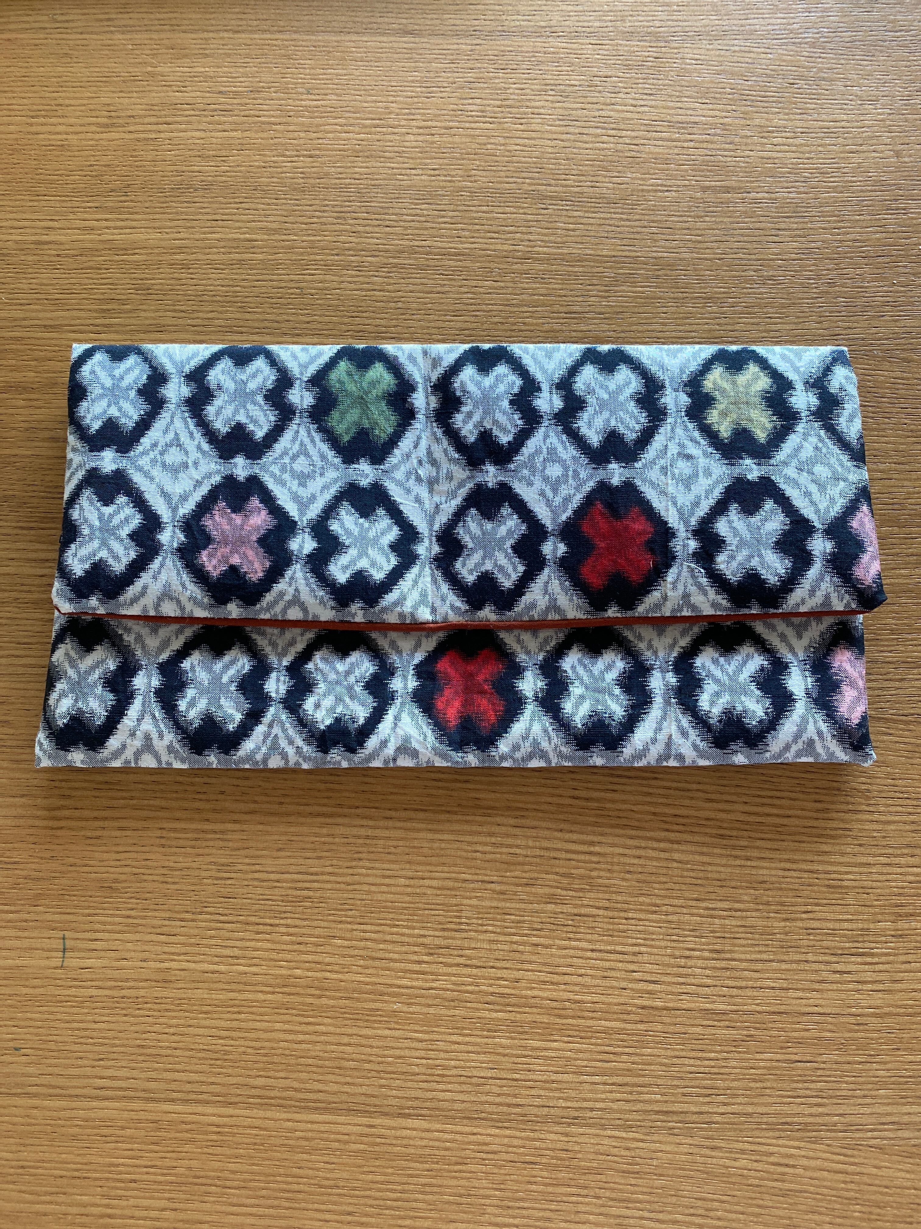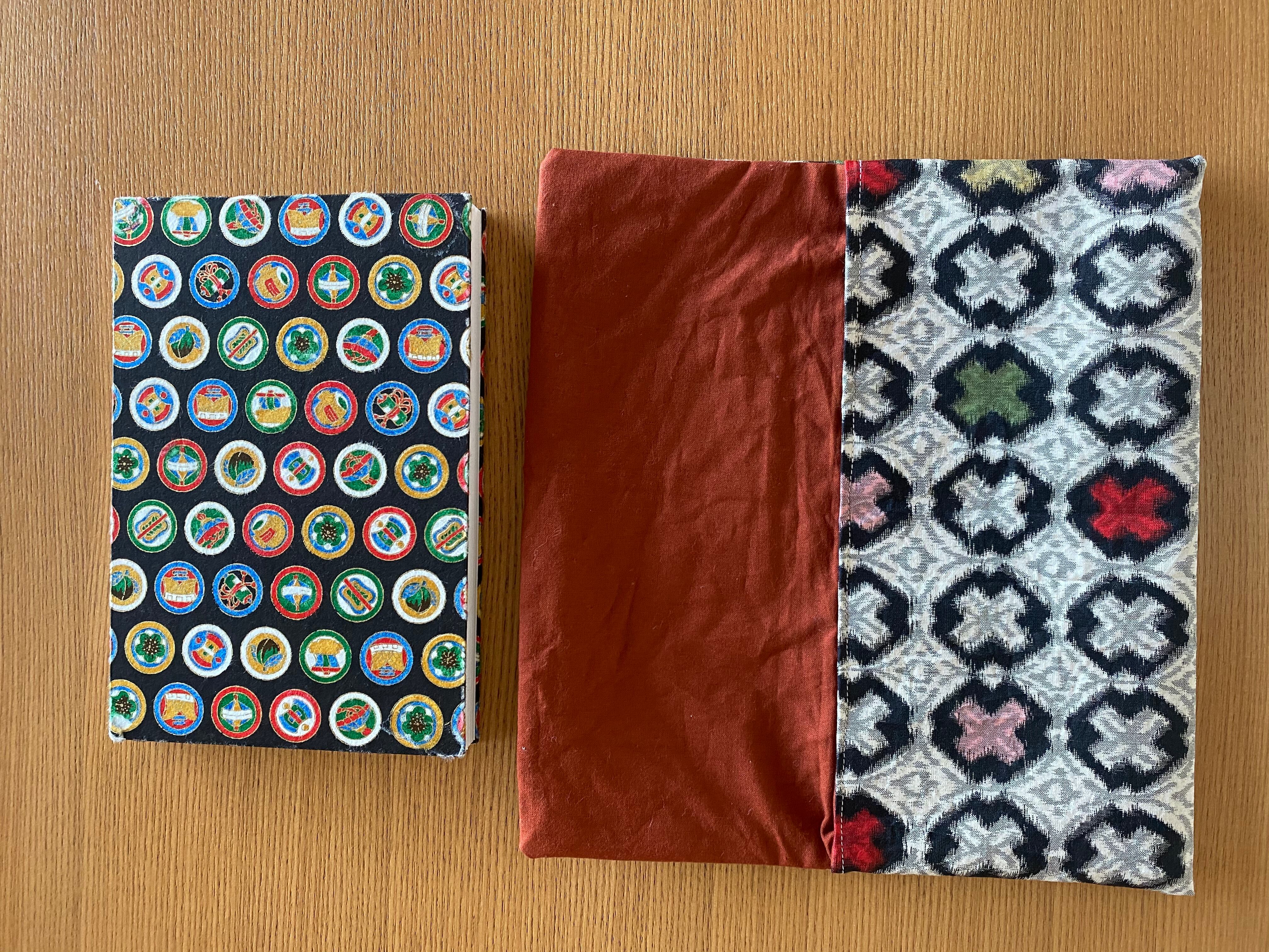 モダンな印象の銘仙生地からの手作り御朱印帳袋(御朱印帳ポーチ)です。