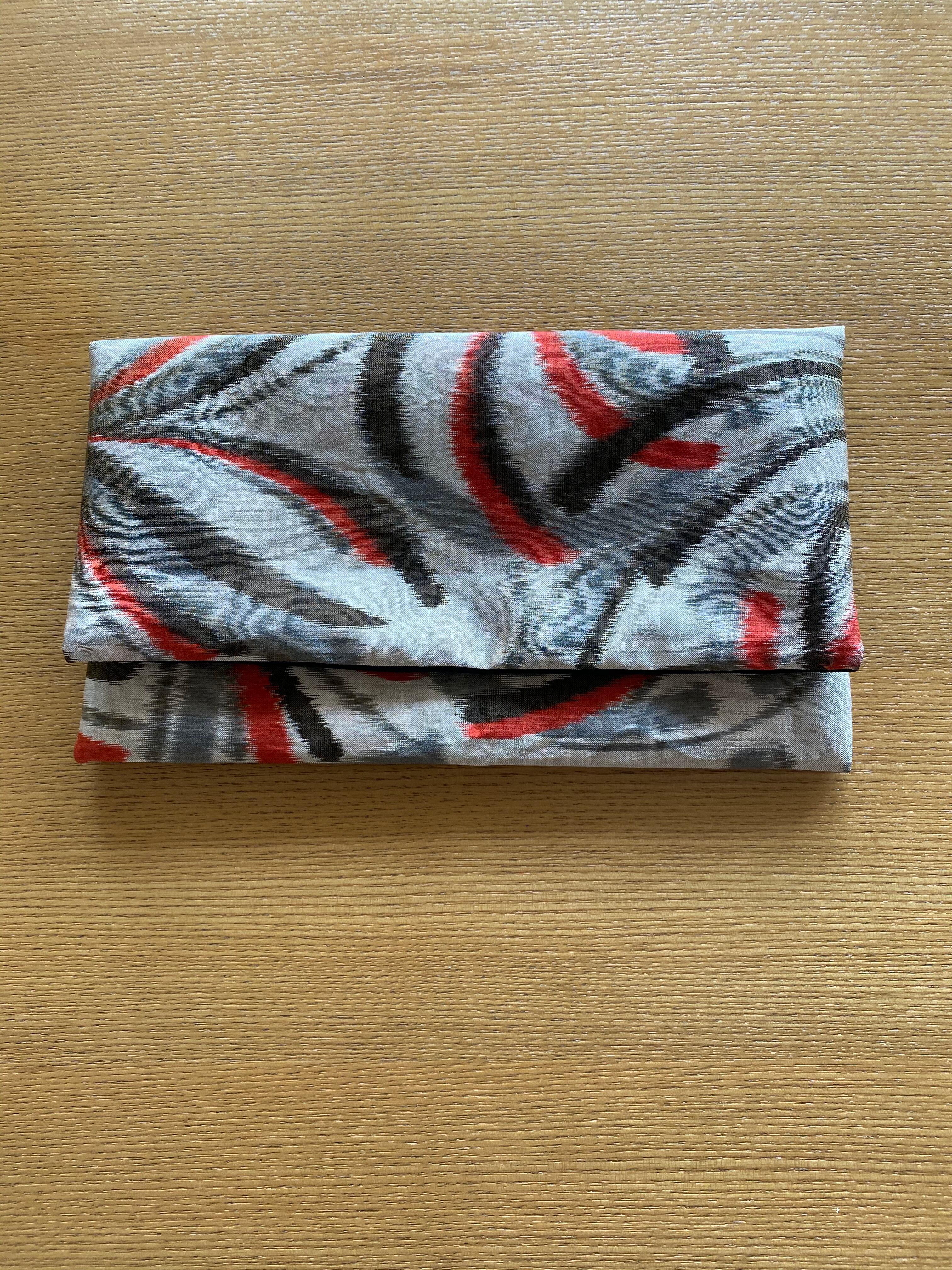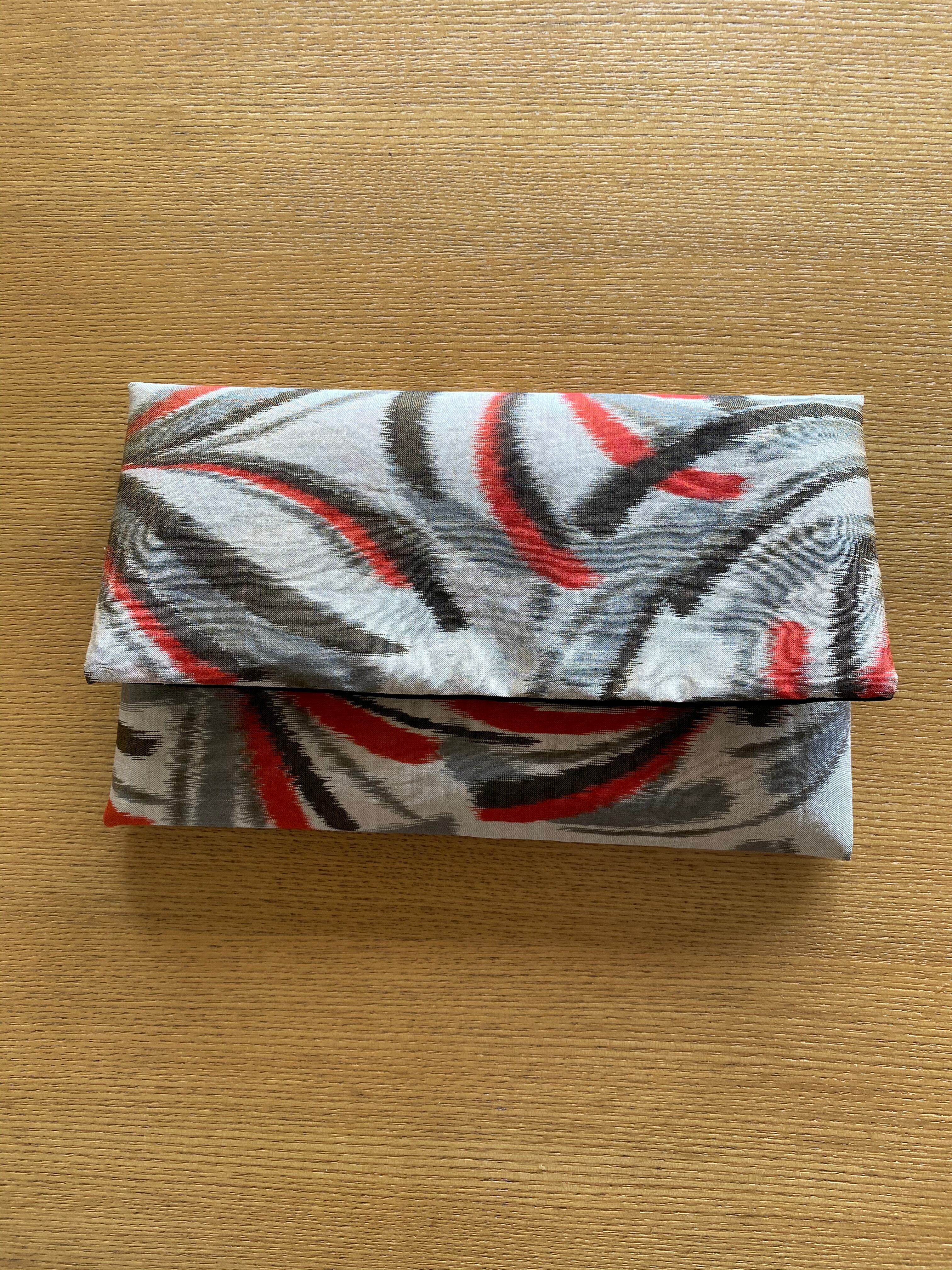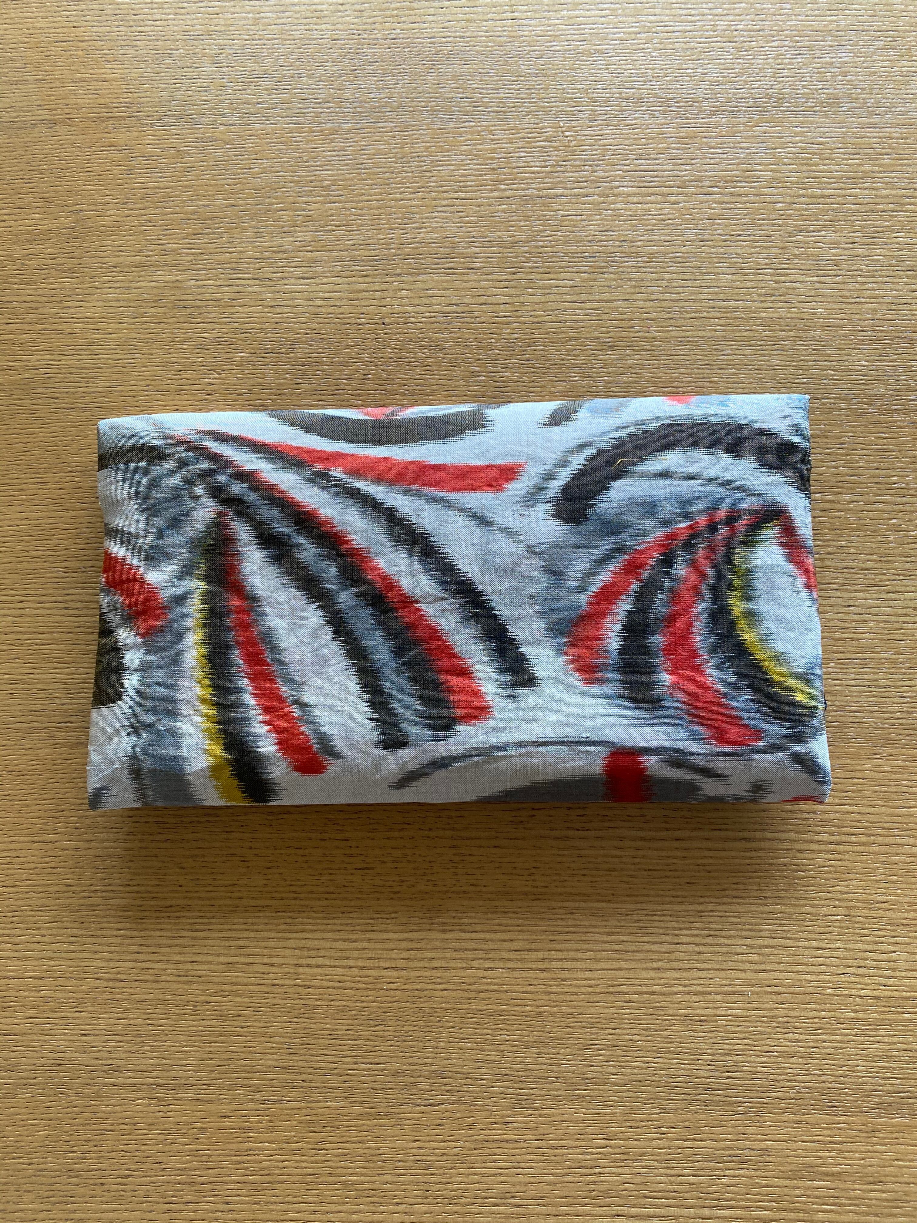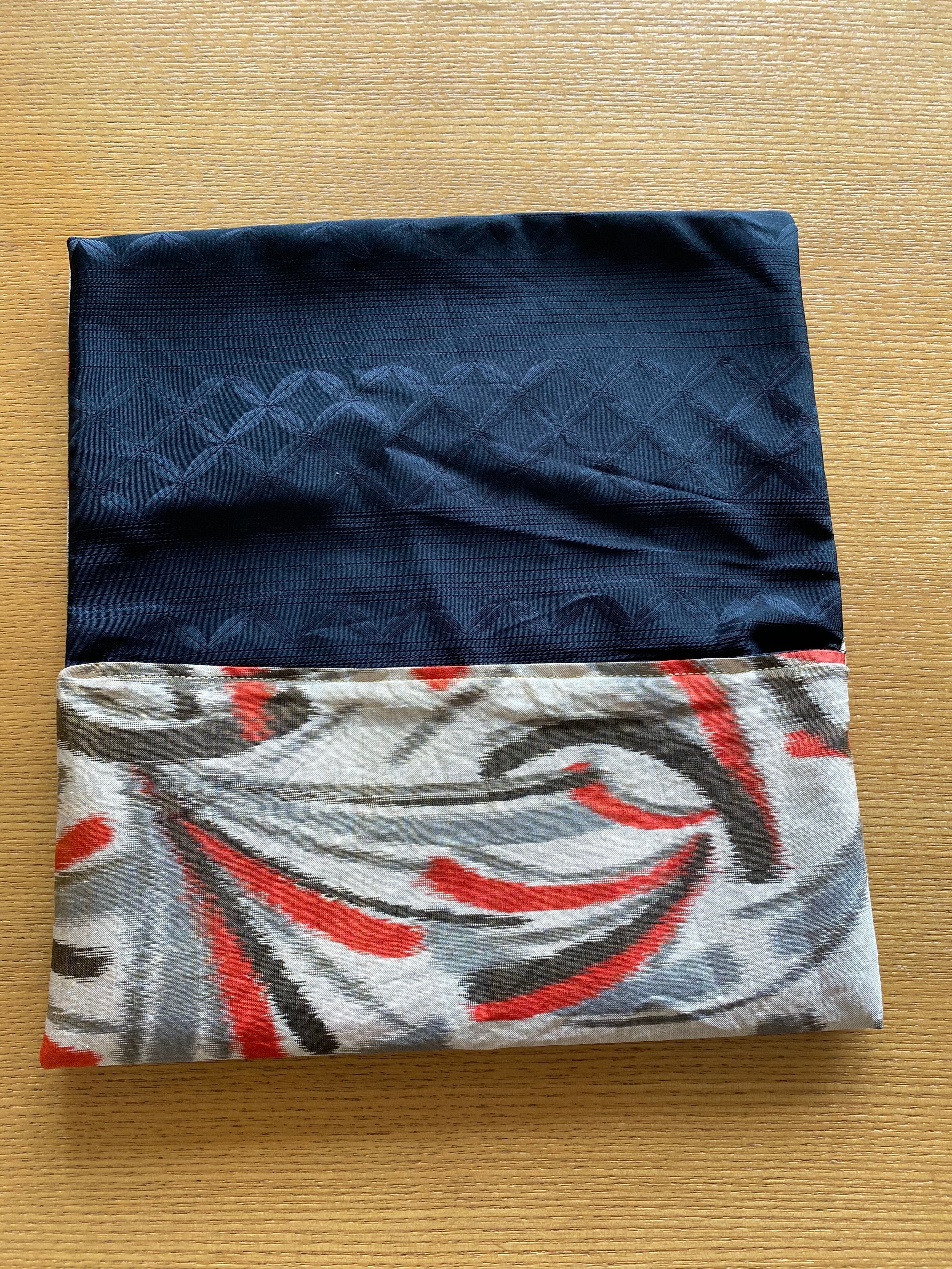 個性的な印象の銘仙生地からの手作り御朱印帳袋(御朱印帳ポーチ)です。