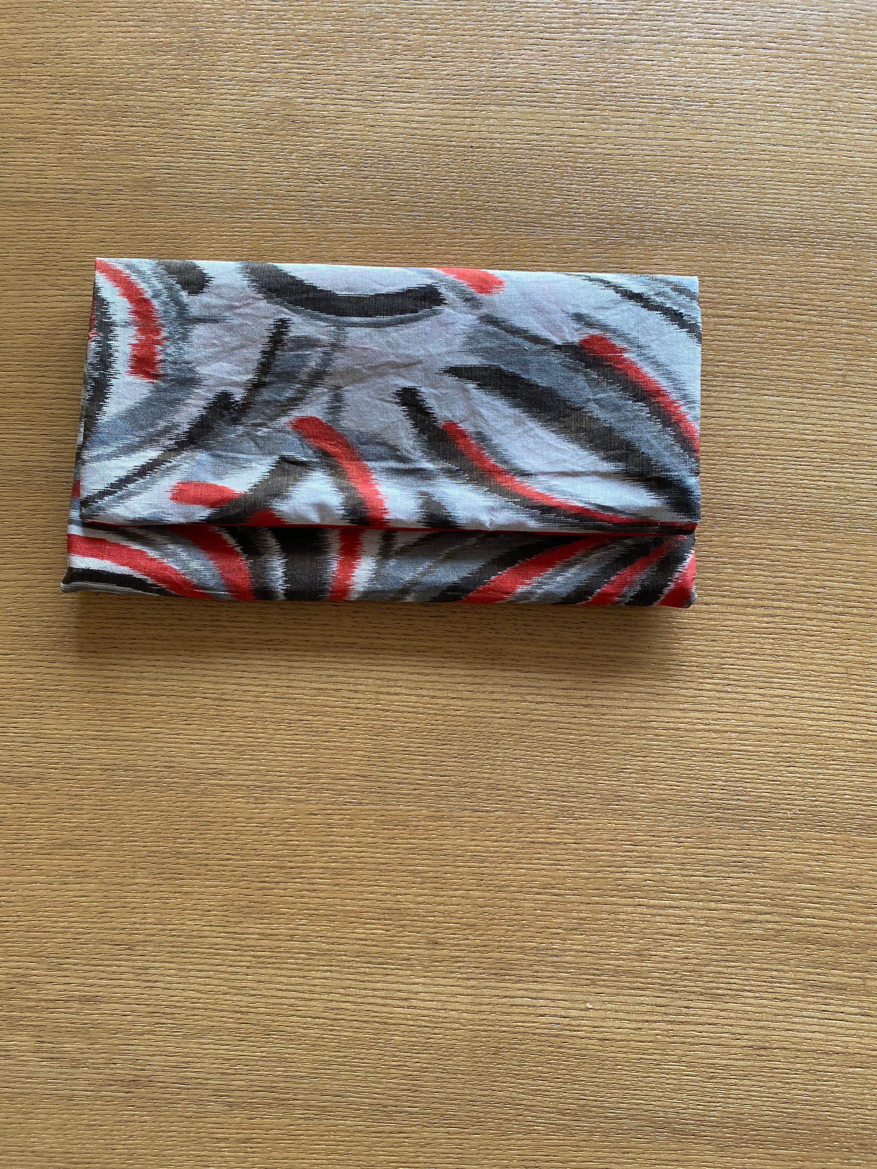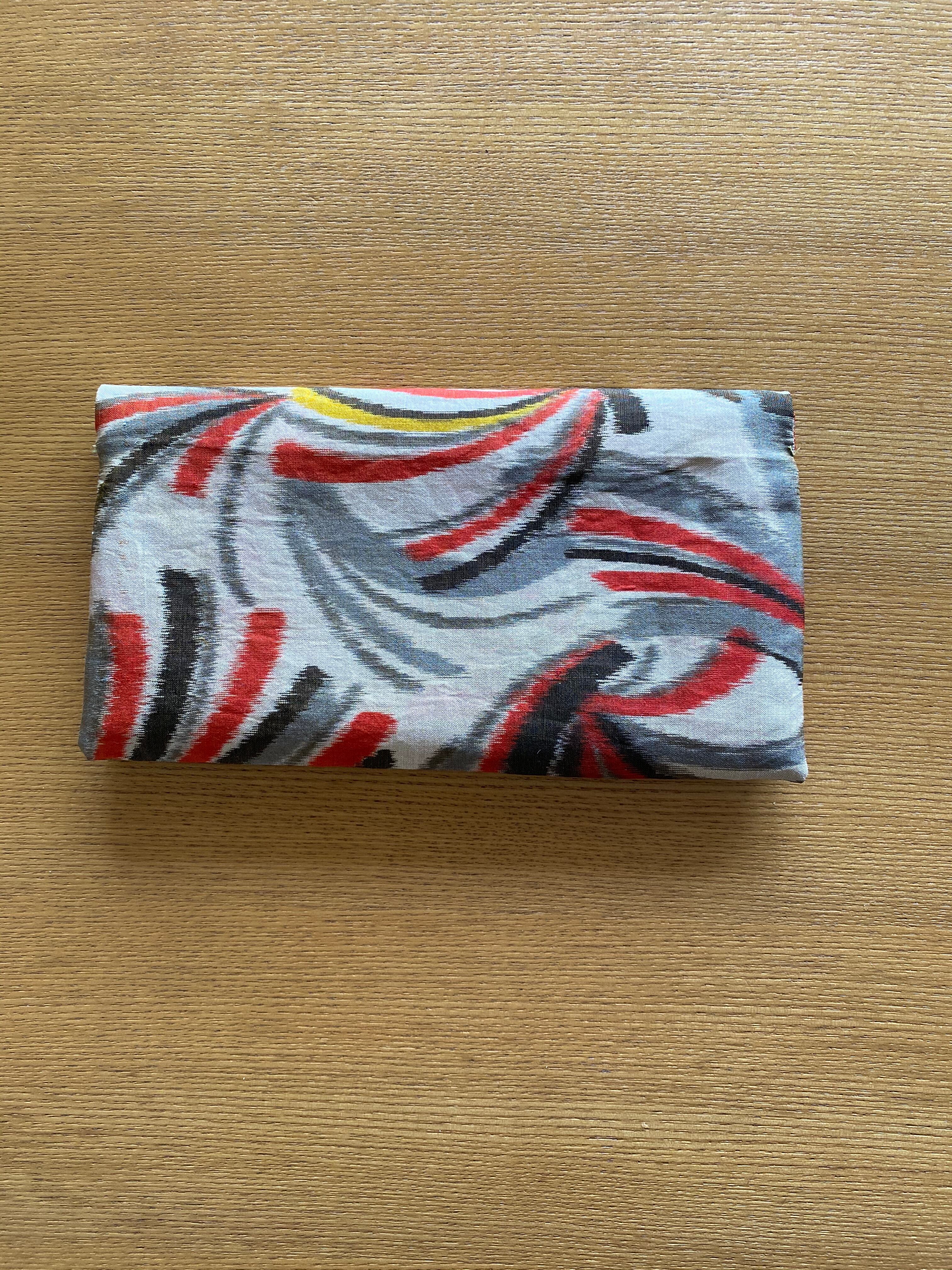 個性的な印象の銘仙生地からの手作り御朱印帳袋(御朱印帳ポーチ)です。