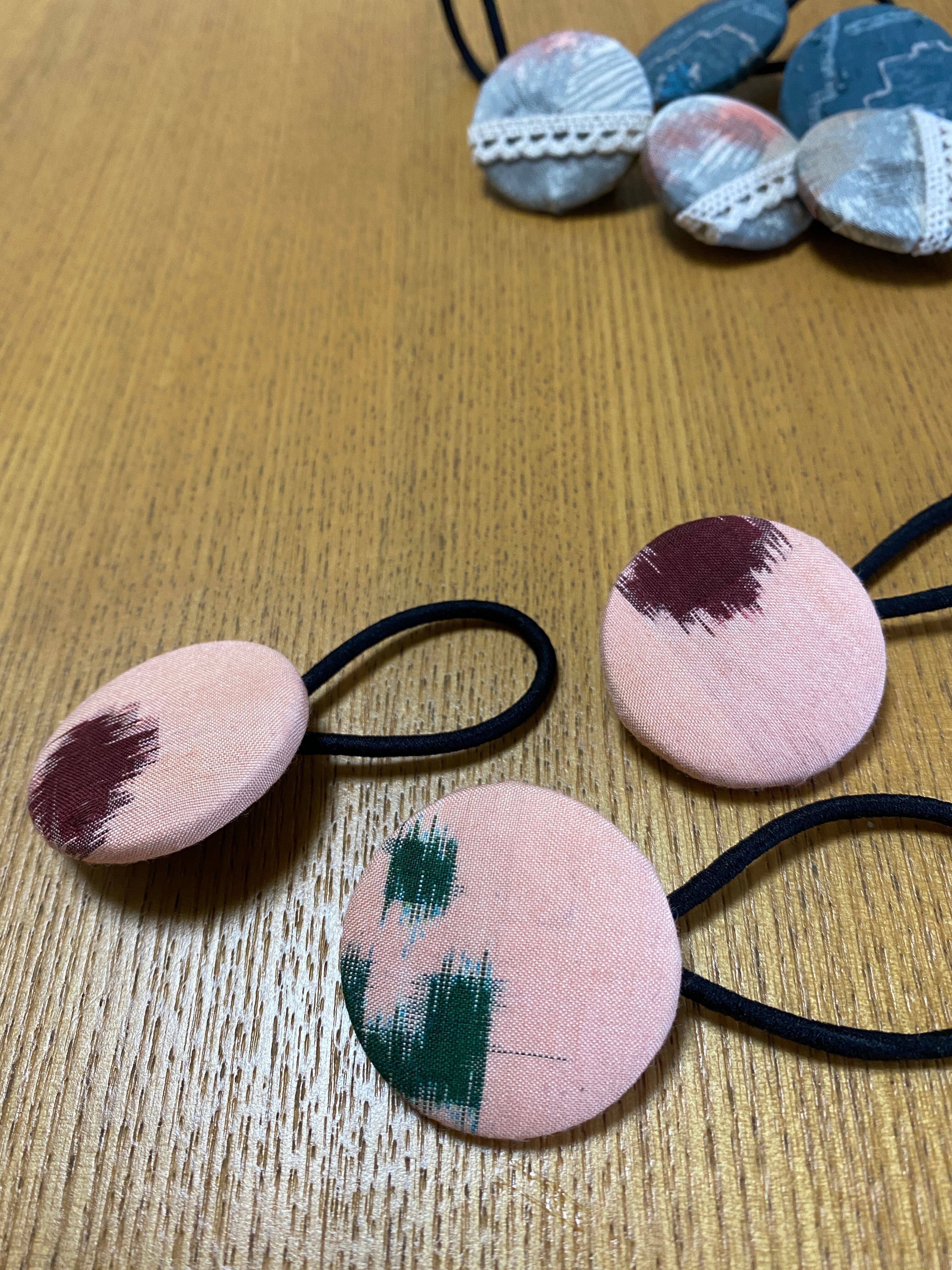 銘仙生地からの手作り髪ゴムです。