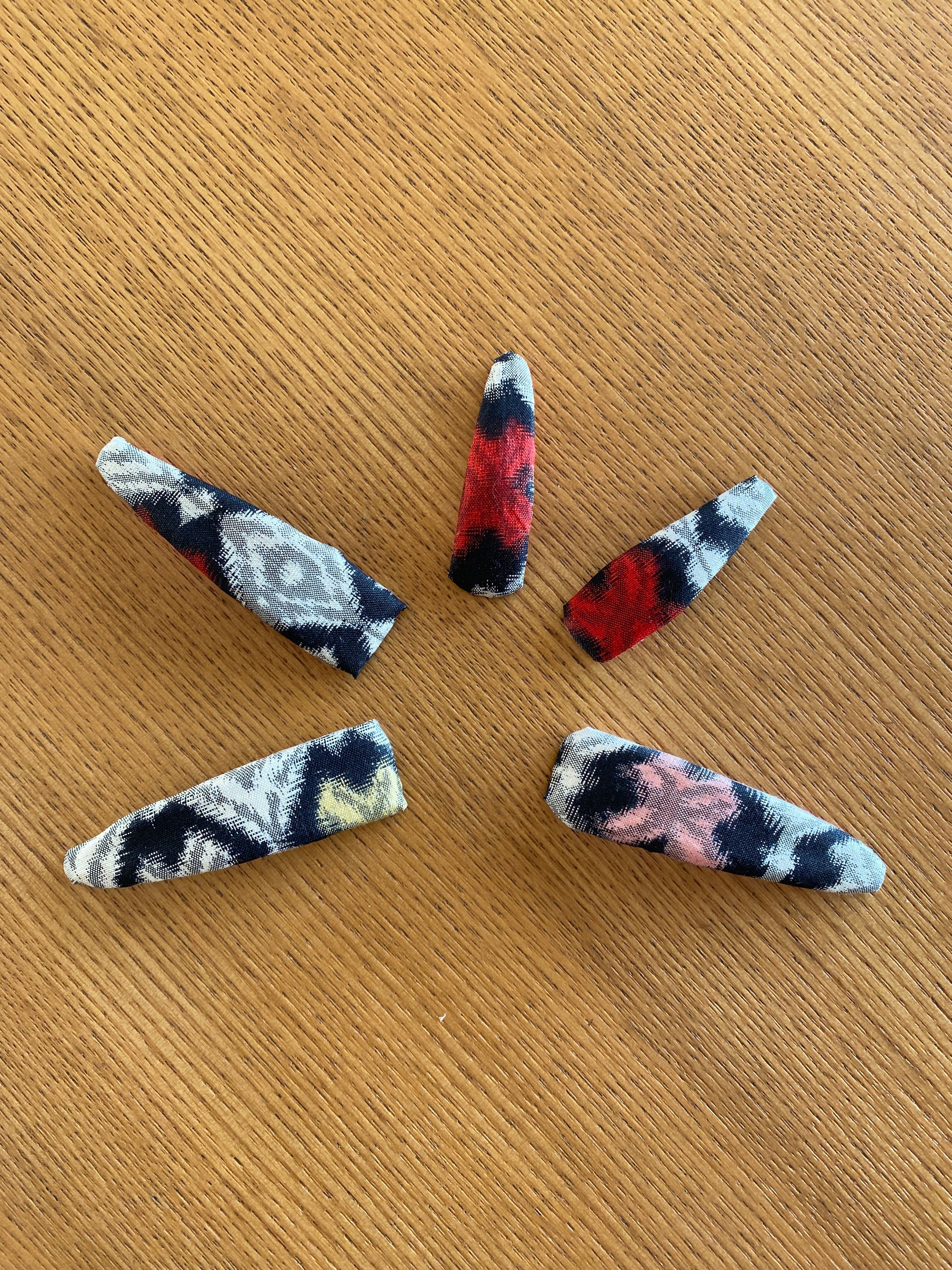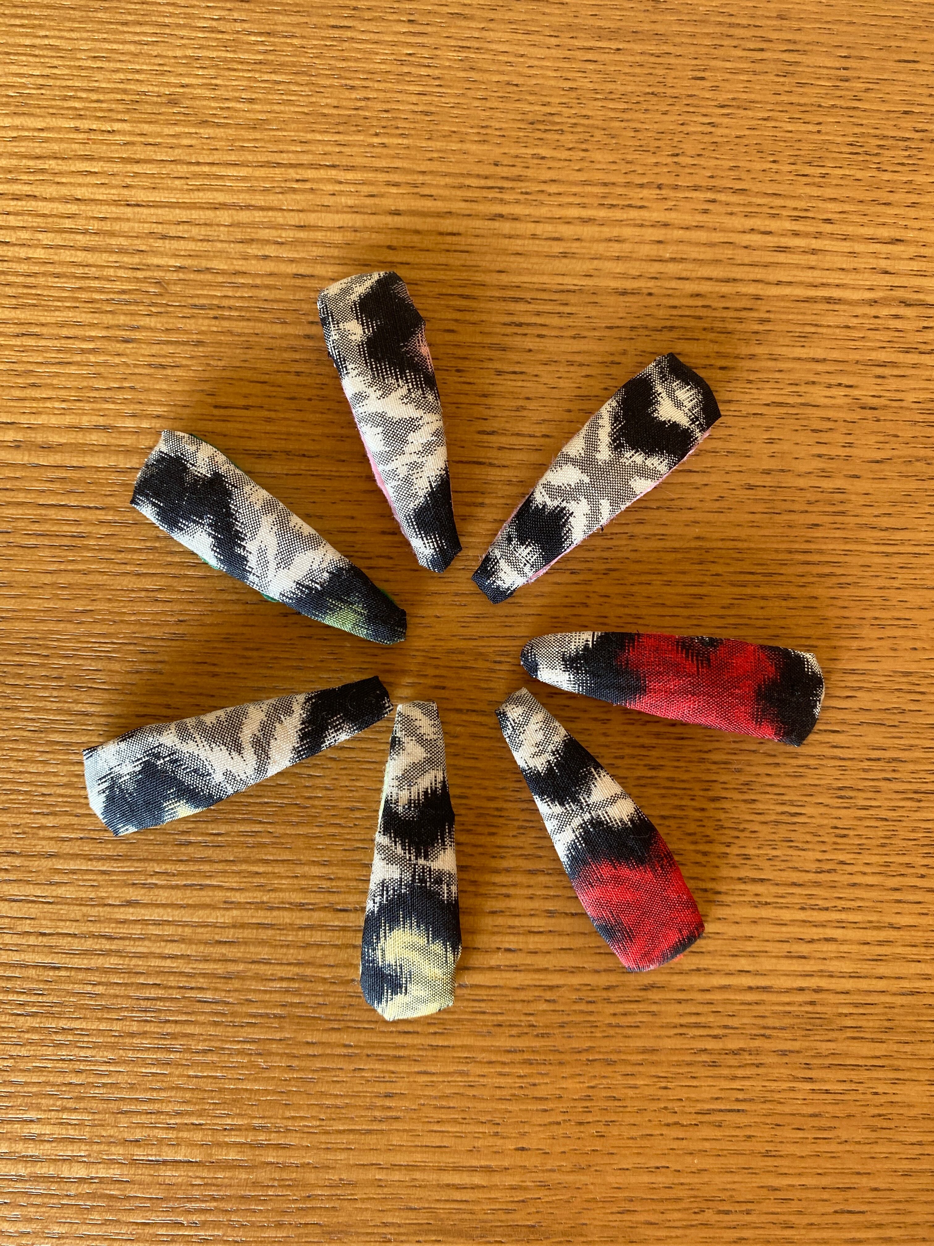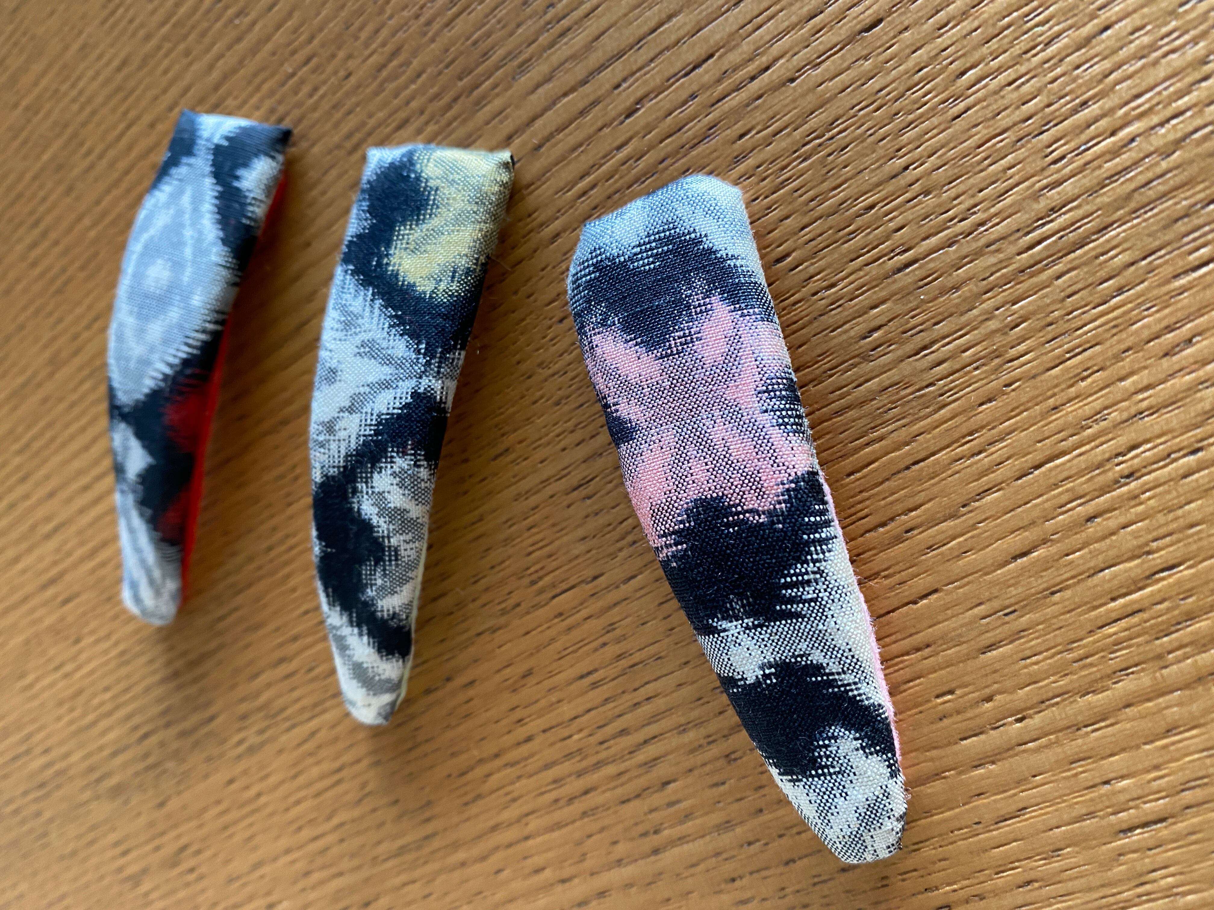カラフルな銘仙のヘアピンです。2つのサイズをご準備しました。
