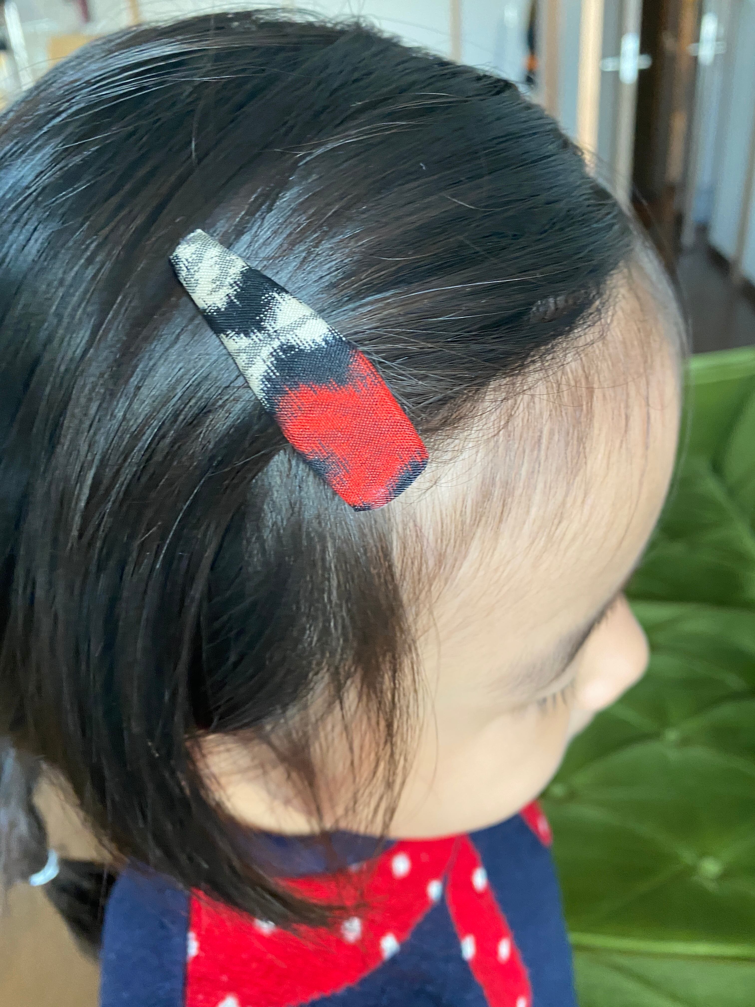 特に小さいサイズはお子様にちょうど良いサイズです。裏のフエルトが、スチールよりしっかり髪に止まります。