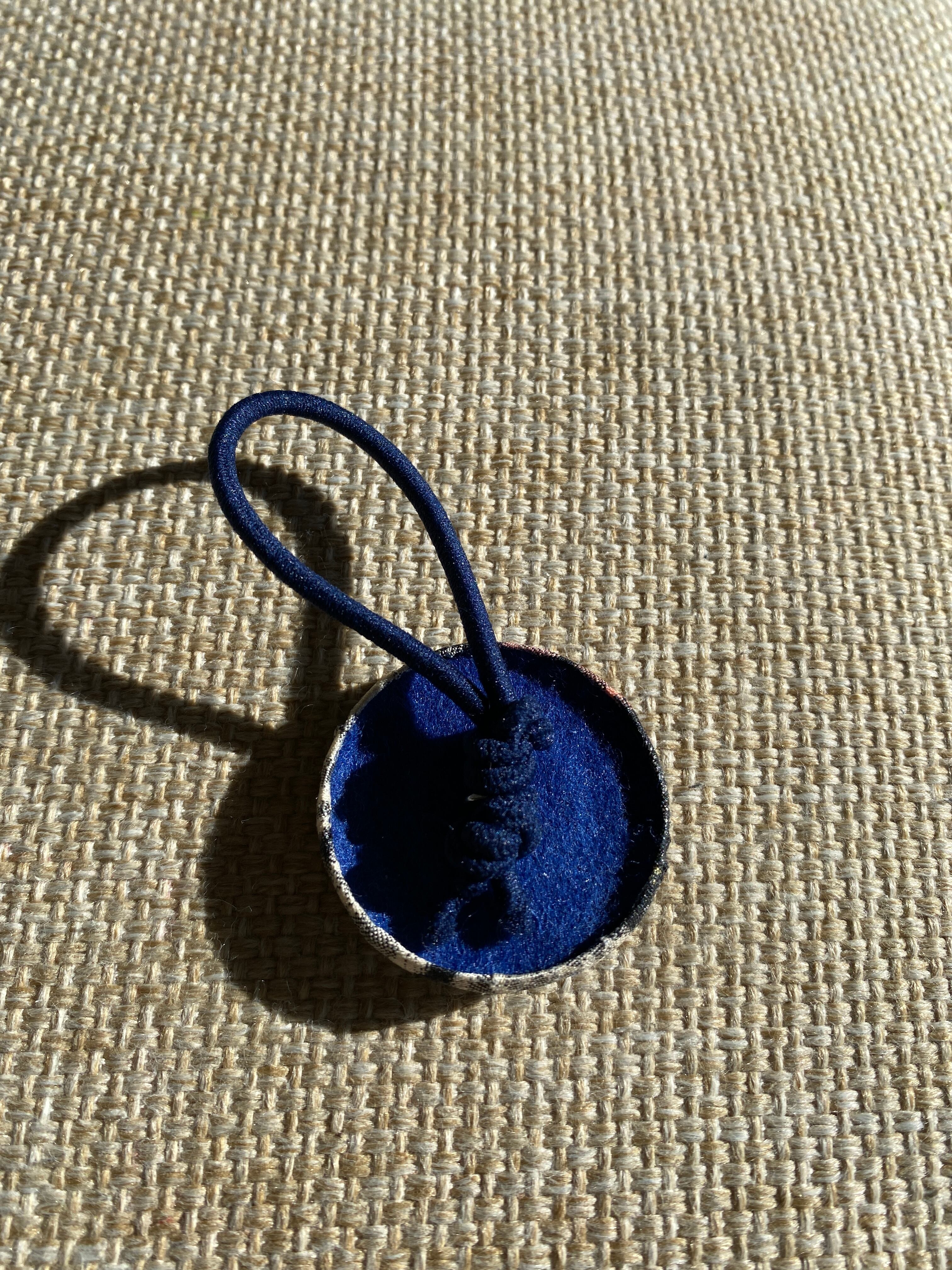 ゴムは紺色にしました。ご希望があれば、黒色や茶色もお作りします。また、ハンドメイド のお品ですので、ご使用によって切れても、ご家庭でゴムを通してずっとお使いいただけます。
