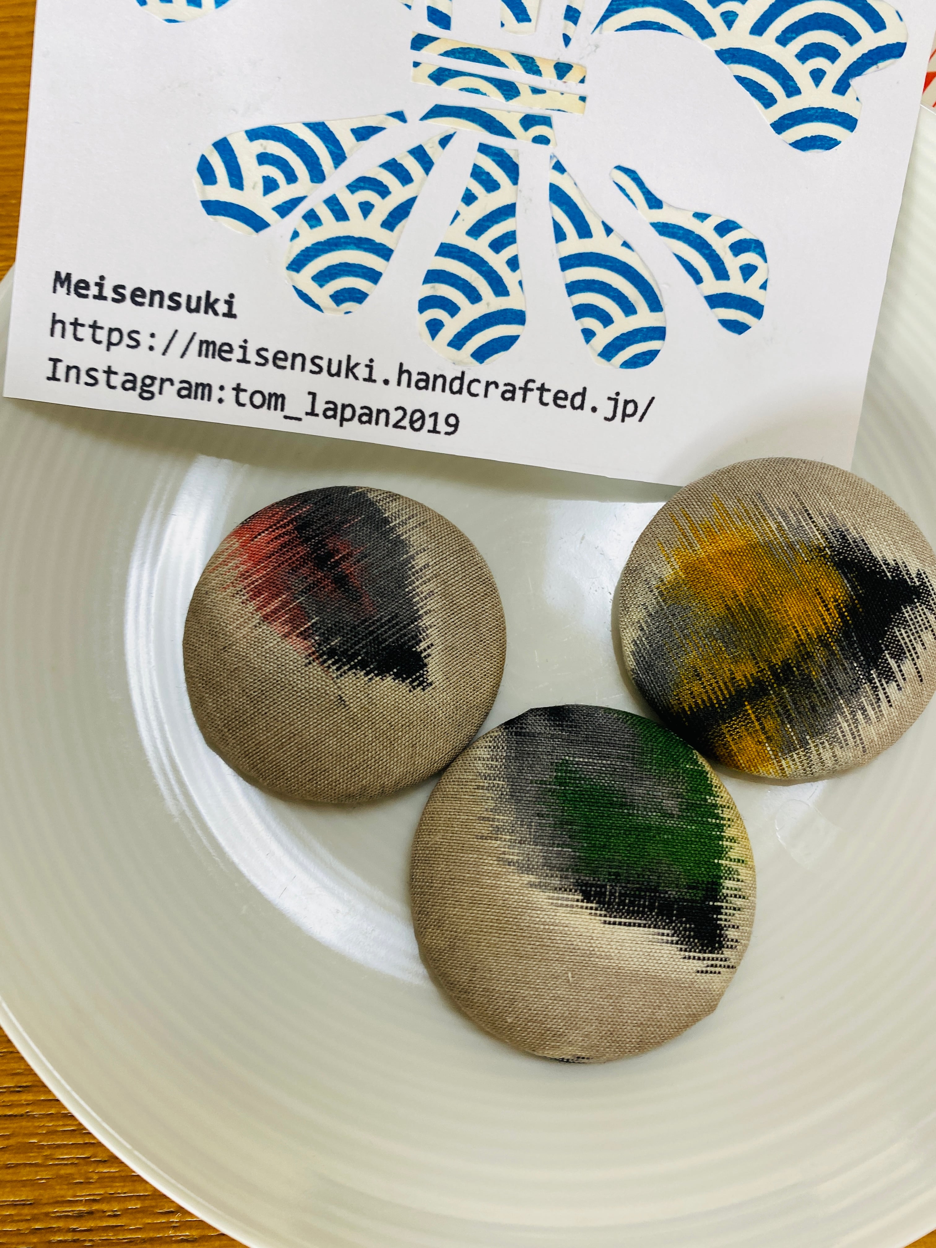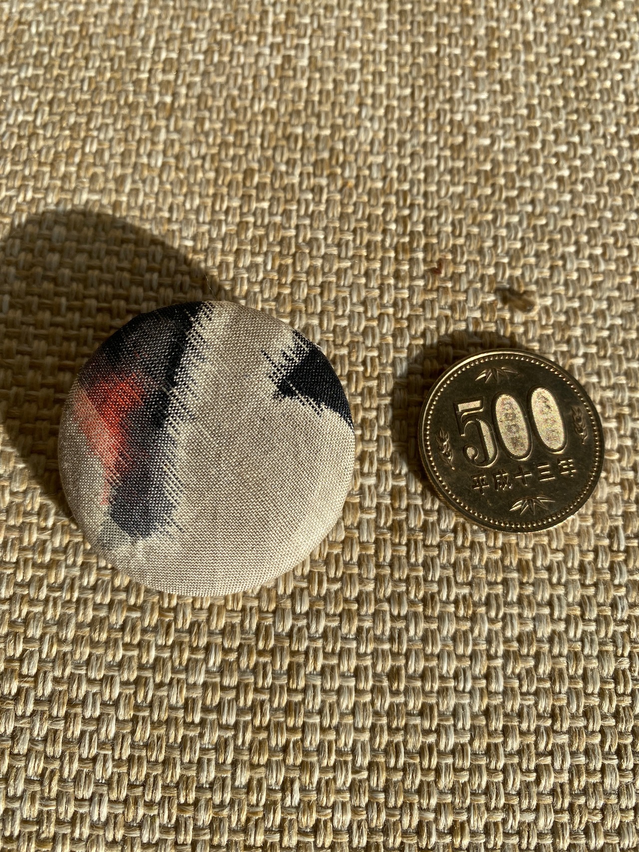 大正モダンな銘仙生地から手作りピンです。