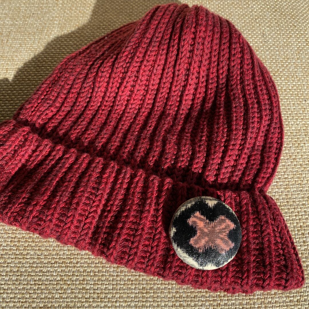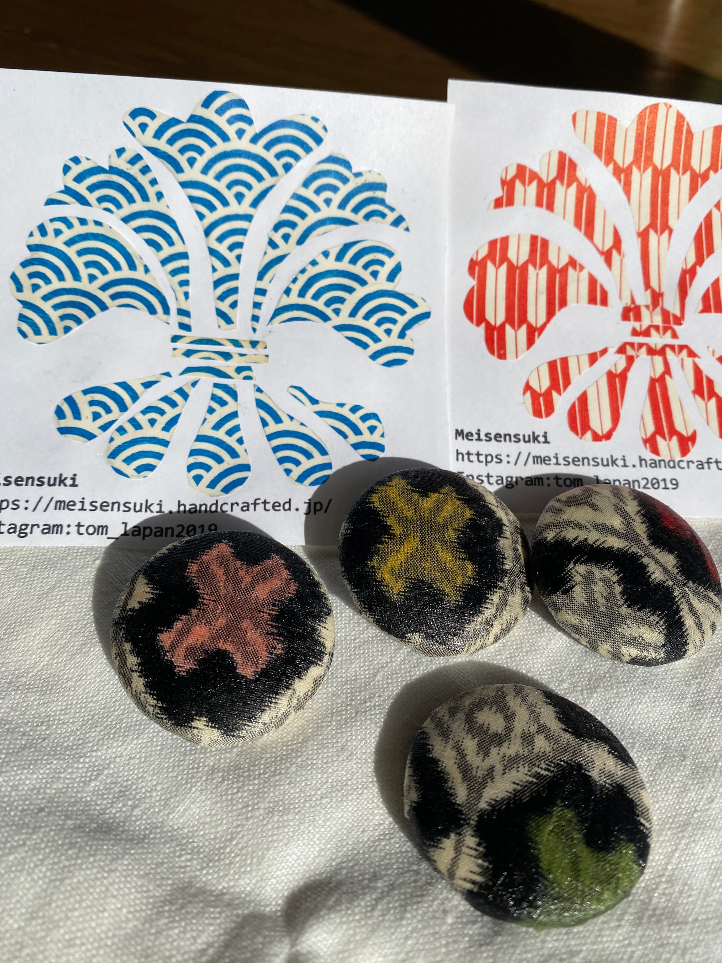 銘仙 クルミボタン ブローチ ピン デコパージュ 加工 311②
