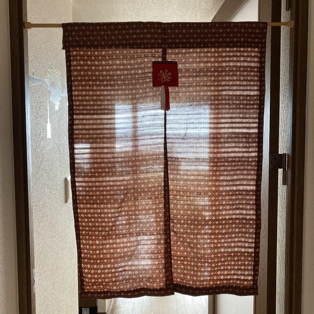 銘仙着物をリメイクして暖簾にしました。
