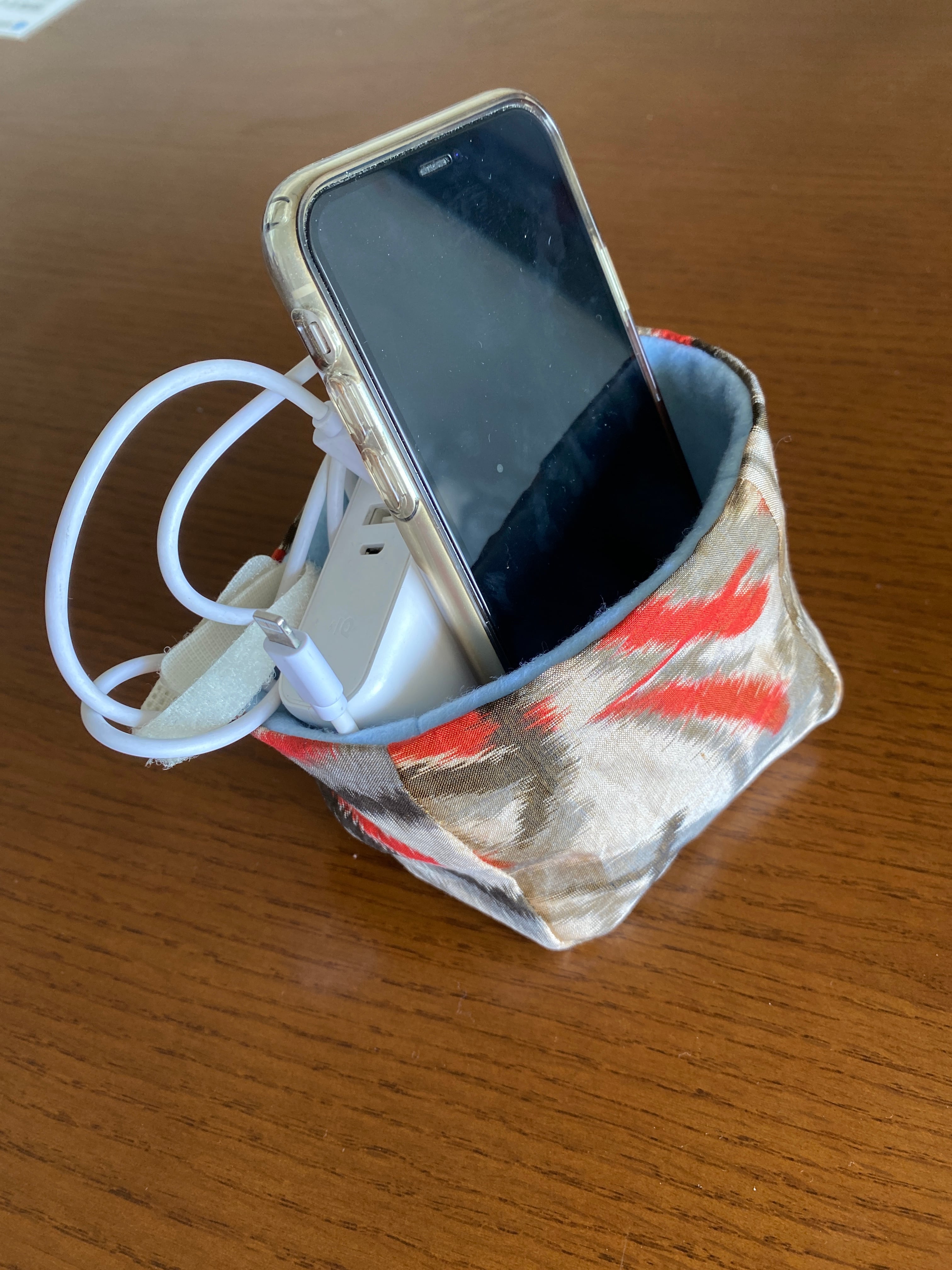大正モダンな銘仙生地から小物入れです。