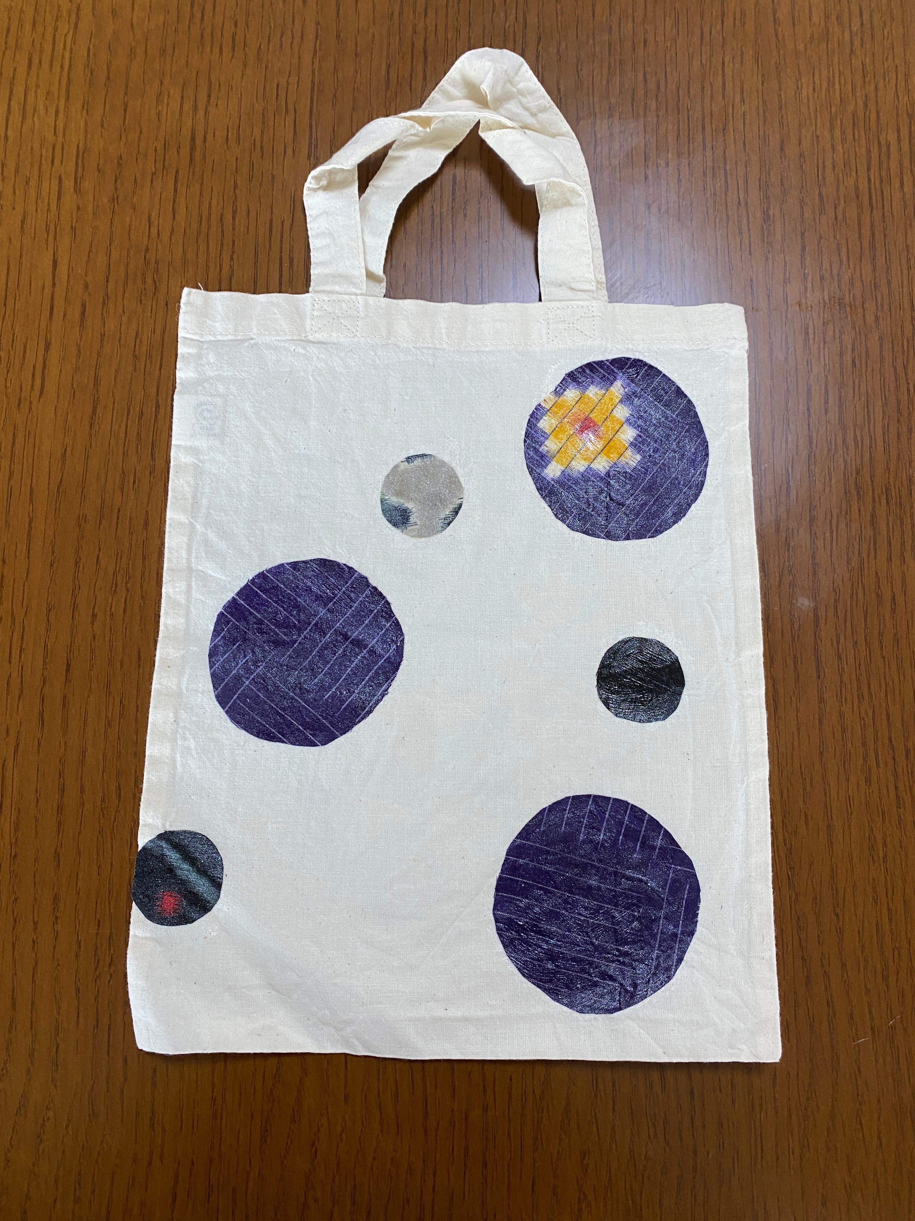 素材:綿バッグに絹(銘仙)を両面デコパージュ
