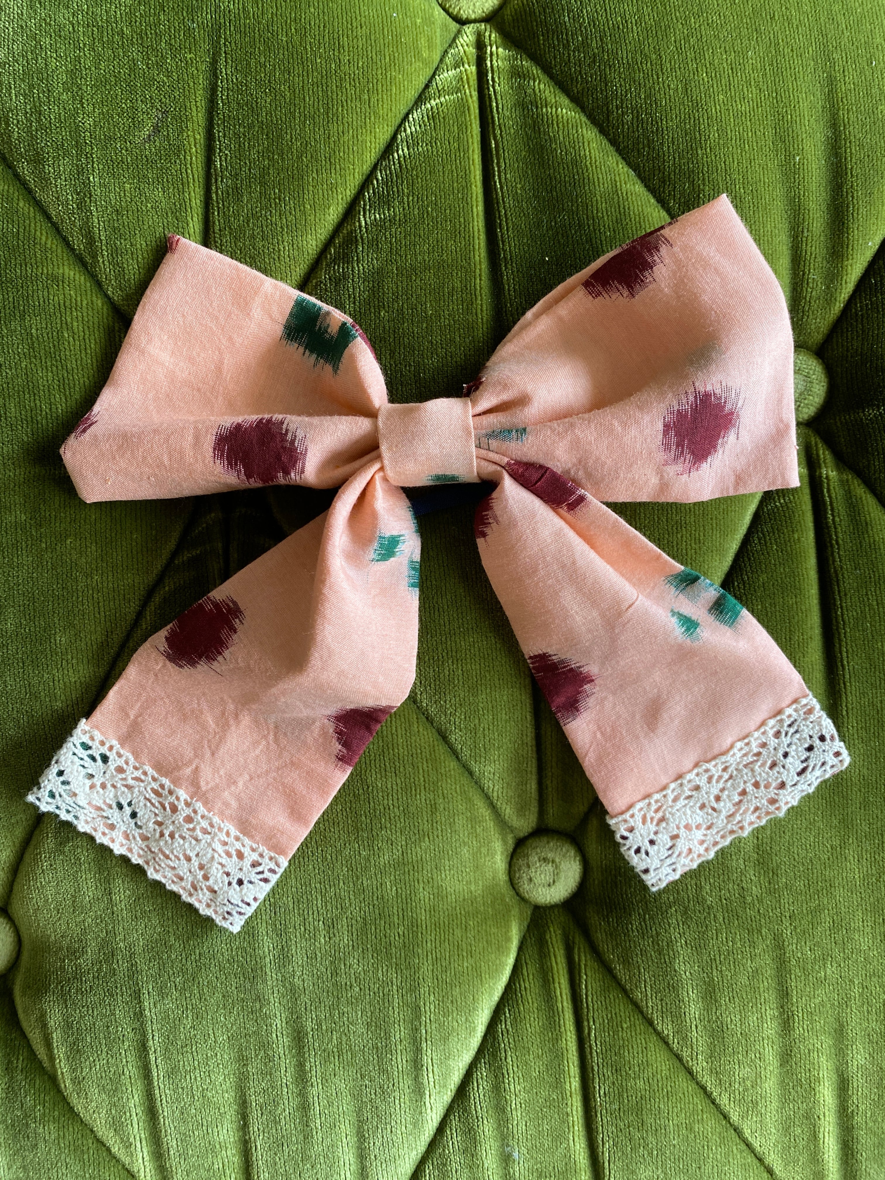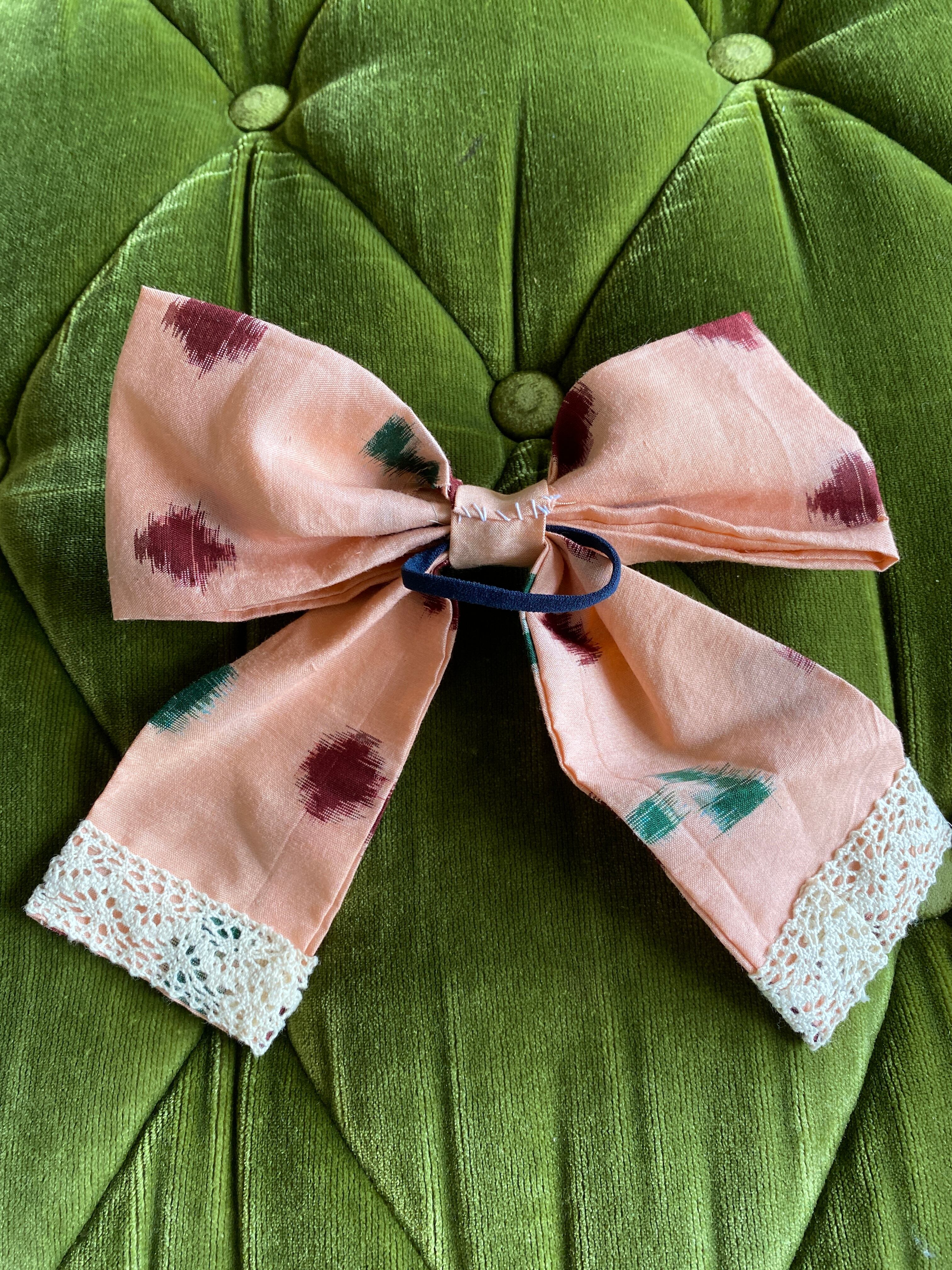 銘仙生地からの手作り髪ゴムです。流行りのビッグリボンを作りました。