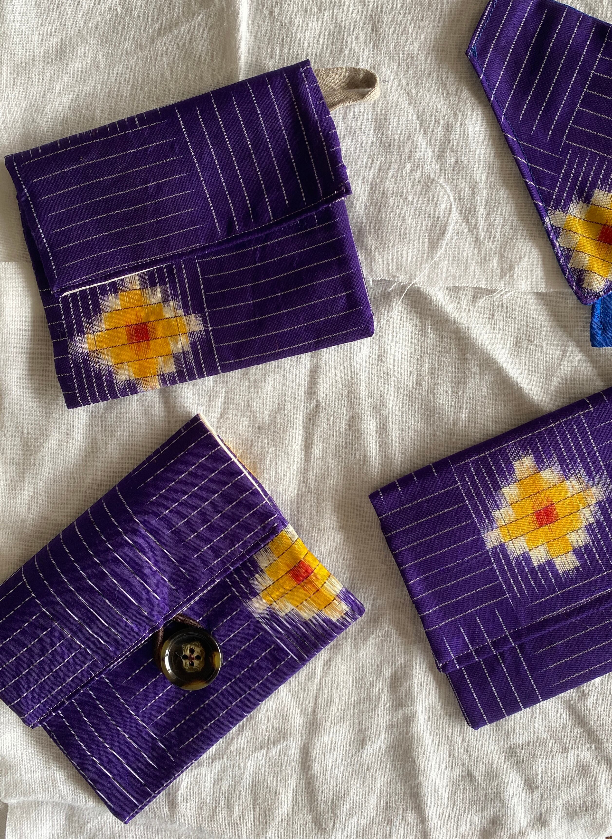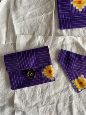 一面は、古風な紫地に、控えめな黄色い柄行きで華やかさをそえています。