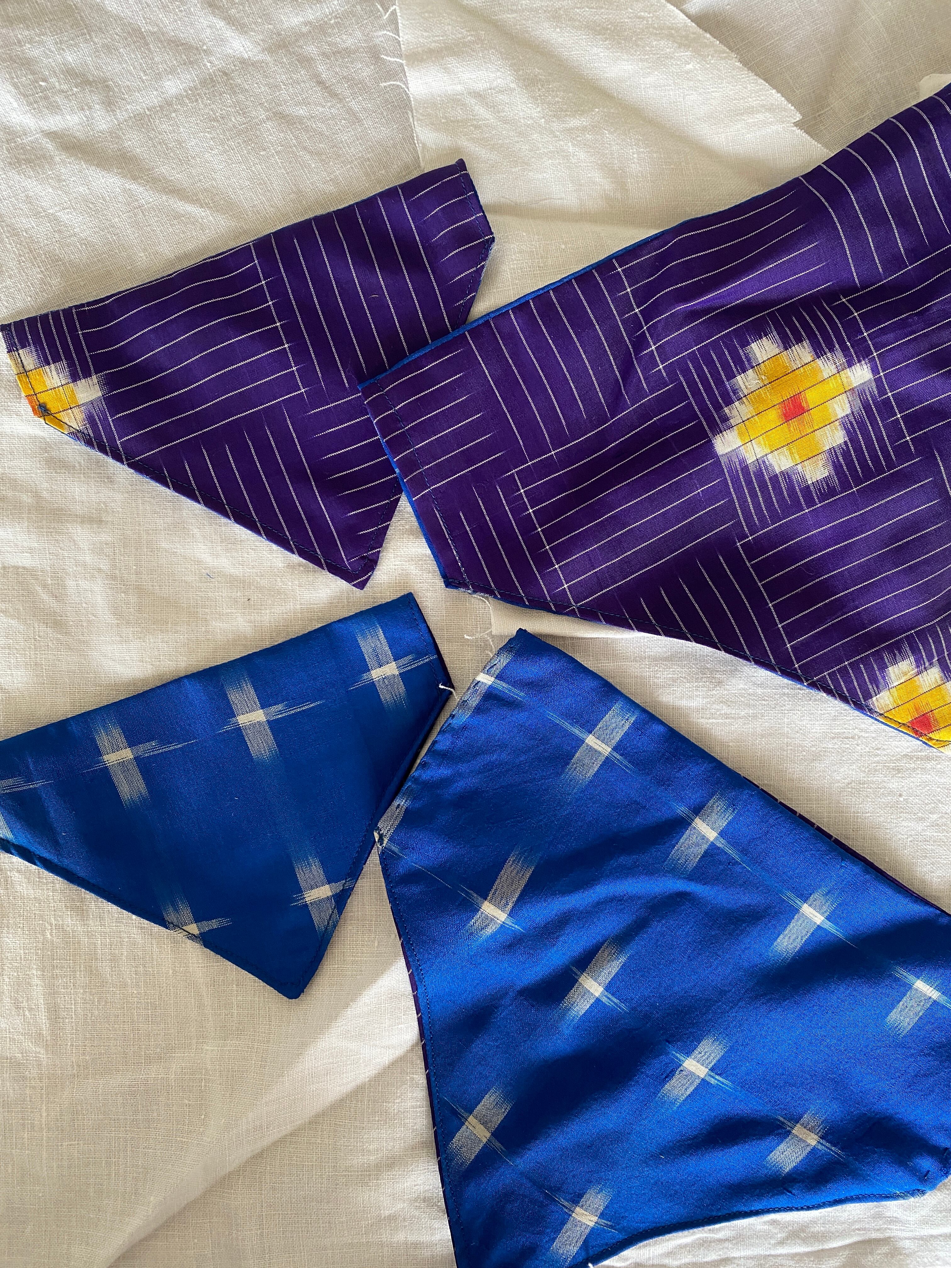 ペット用バンダナはリバーシブルで、両面とも銘仙です。
