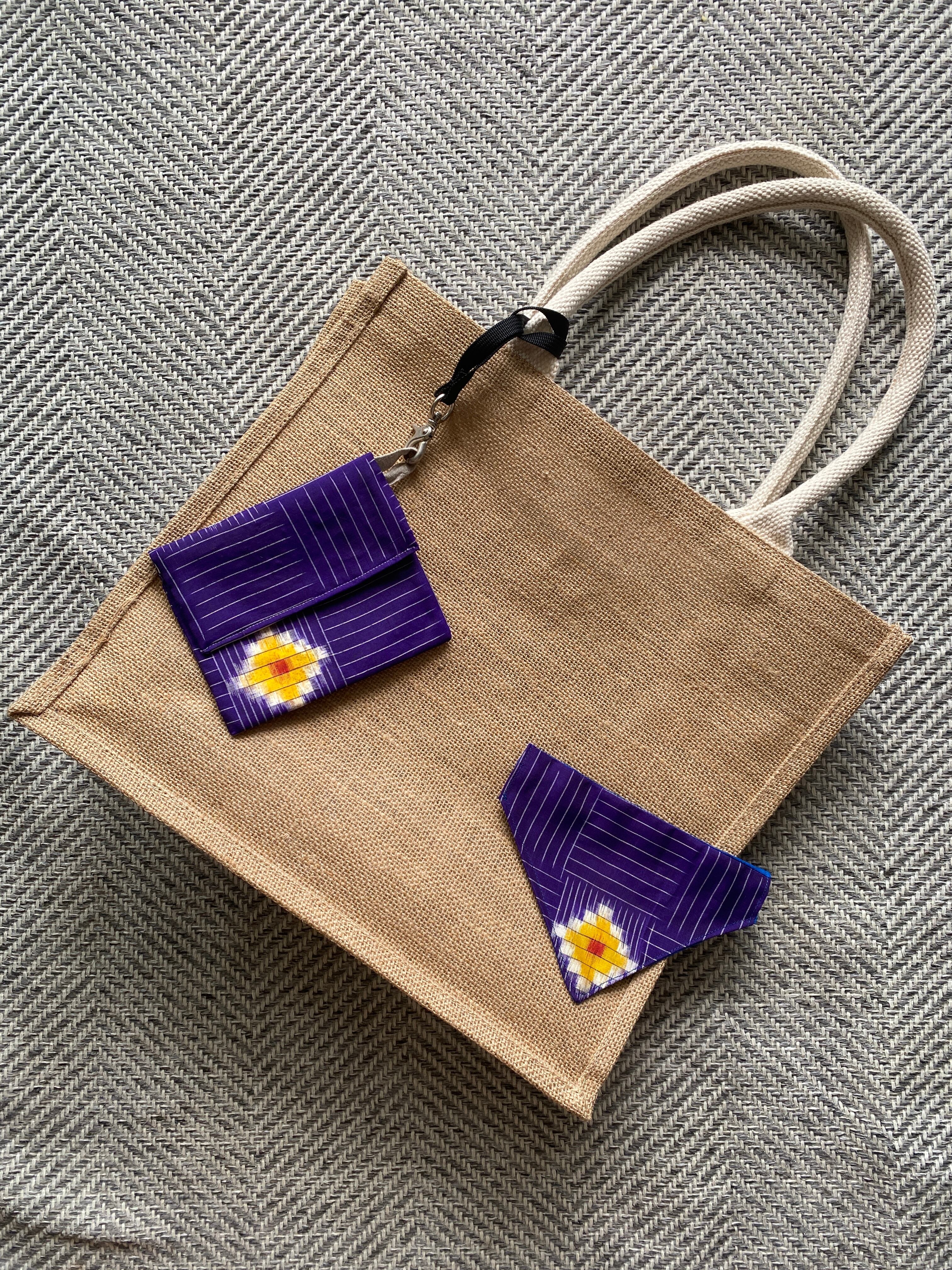同じ反物から作ったミニポーチて、ワンちゃん(ニャンちゃん)とのリンクコーデを楽しめます。