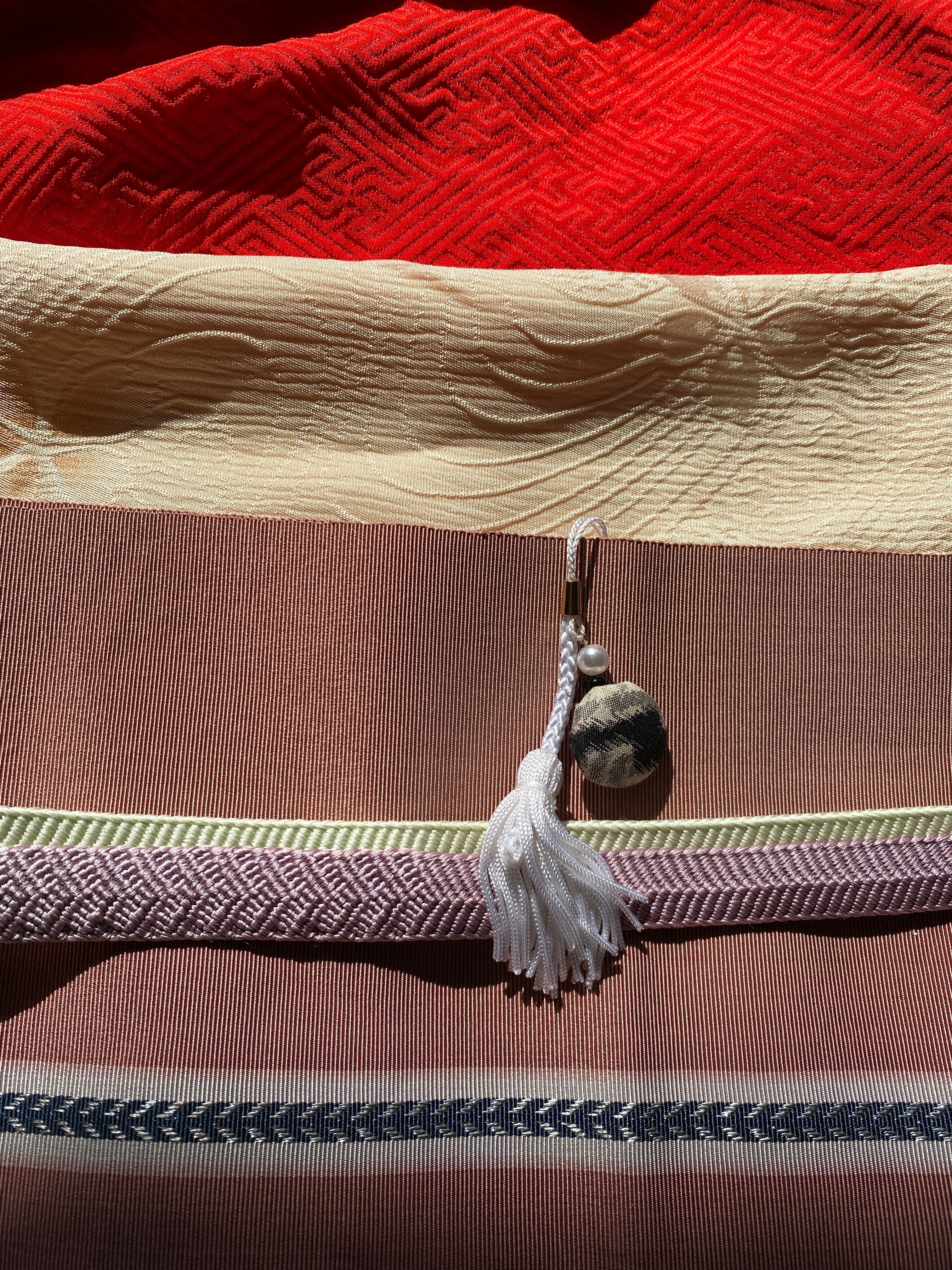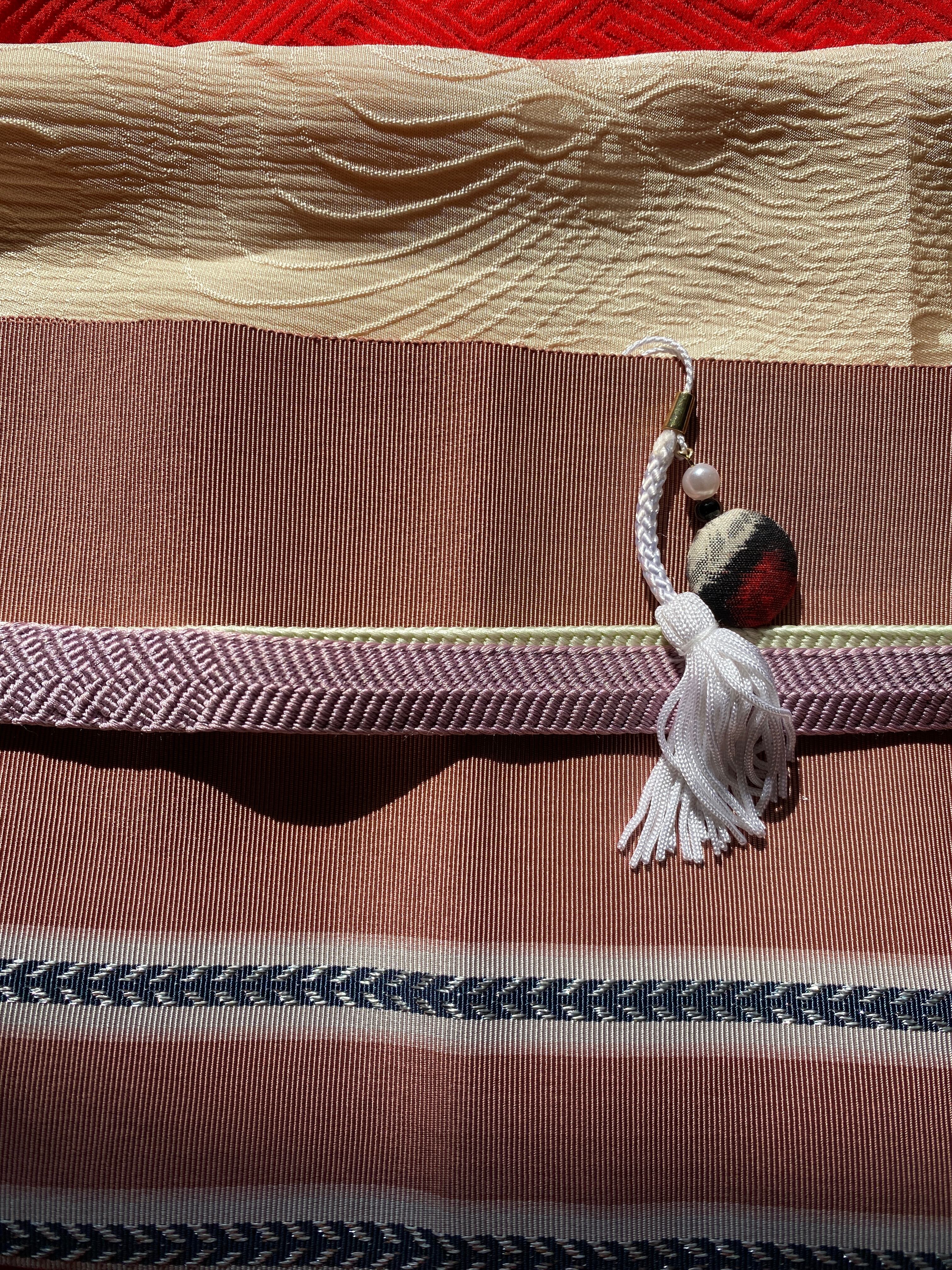 また、ガマ口の輪っかに通していただいて、日常使いに。小銭入れサイズでしたら、そのまま帯に挟んで帯飾りに。